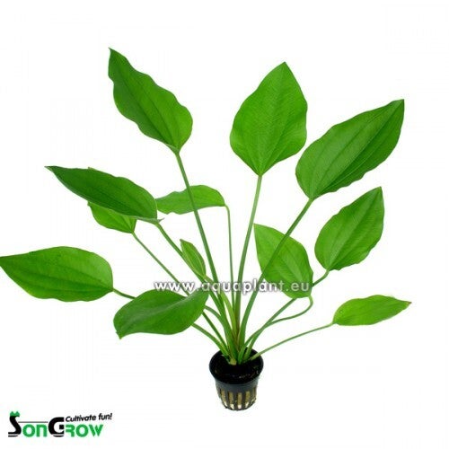 "Dit is een gewone, groene, sterke echindorus die snel de hoogte ingroeit en dus onderin het aquarium veel ruimte laat voor doorkijk. Je kunt hem dus bijvoorbeeld poten voor een mooi stuk hout. Je ziet de mooie groene plant, maar ook het hout! Hij overleeft wel bij een zwakke belichting, maar heeft liever wat meer licht."