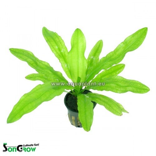 "De bladeren van deze plant zijn lichtgroen van kleur en zelfs een beetje doorschijnend. De bladvorm is licht golvend. Het is een prachtige plant die wel 60 cm groot kan worden! Supermooi in een groot of middelgroot aquarium, waar ze wel voldoende voeding en licht nodig heeft. In de winkel is deze plant vaak klein omdat hij boven water gekweekt wordt en dan heel langzaam groeit. Onder water laat hij zijn ware aard zien. Als hij bloemen maakt boven water (leuke witte bloemetjes dicht op elkaar op een lange stengel), dan maakt hij er ook gelijk heel veel waardoor u heel veel babyplantjes kunt poten."