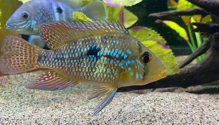 - Inrichting: Zandbodem (essentieel); stenen en hout voor territoria; open zwemruimte