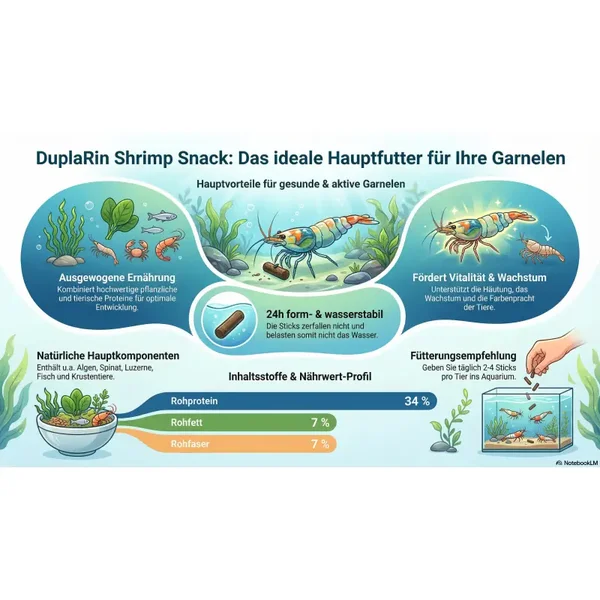 Het voer ondersteunt het vervellen, groeien en de vitaliteit van de dieren en is ideaal geschikt voor zowel nanoaquaria als grotere aquaria.
