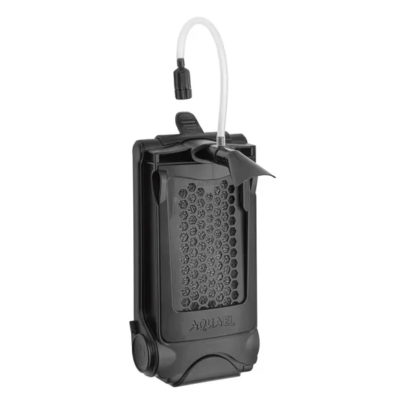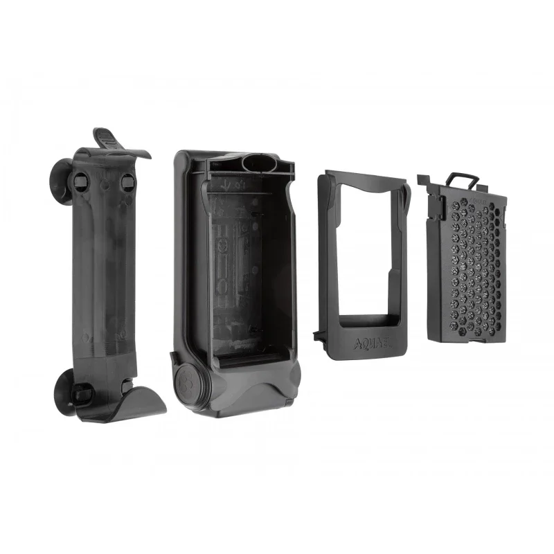 Het filter heeft een praktische montageoplossing. Het frame is bevestigd met 4 zuignapjes. Het mandje met de filtermodule kan echter naar buiten worden geduwd door erop te drukken. Dit maakt het filter heel eenvoudig te onderhouden – de motor blijft de hele tijd in het water.